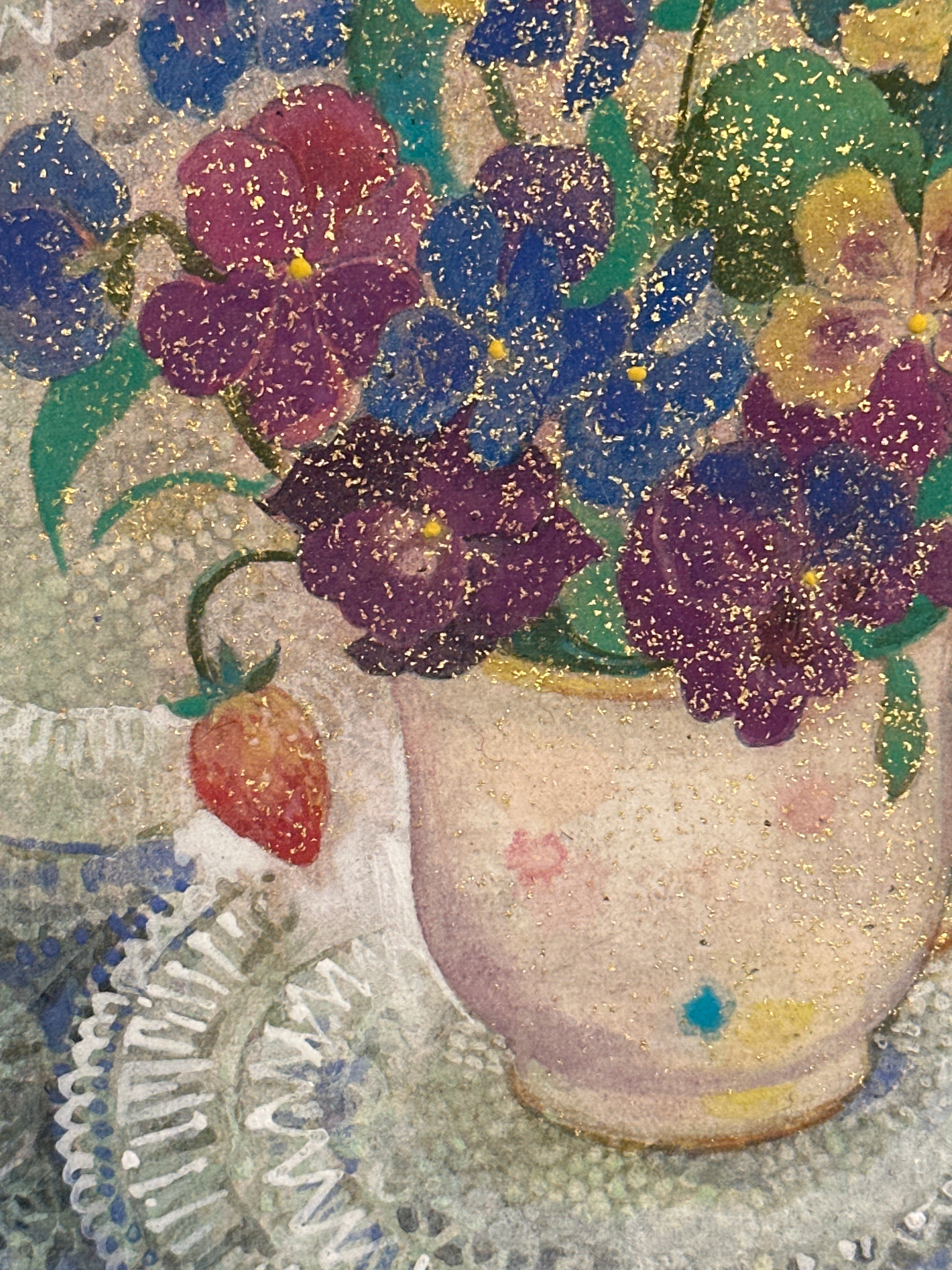 繊細な筆致と、純金のほのかな輝きが重なり合い、