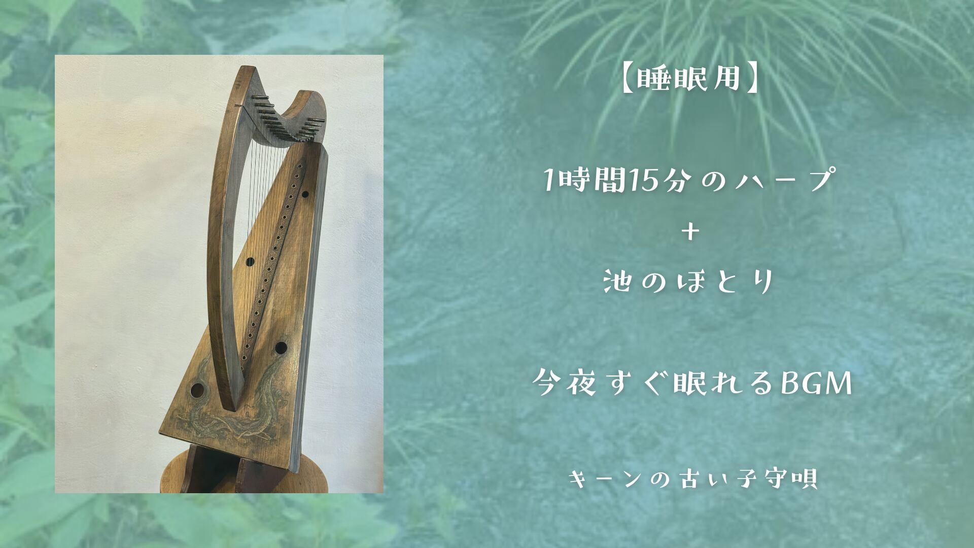 【睡眠用】1時間15分のキーンの古い子守唄+池のほとりの音|今夜すぐ眠れるBGM ハープ+自然音でぐっすり睡眠 Harp & Nature ASMR 1h15m 眠りの錬金術師 | 「シナモン」小さなハープと絵画の販売