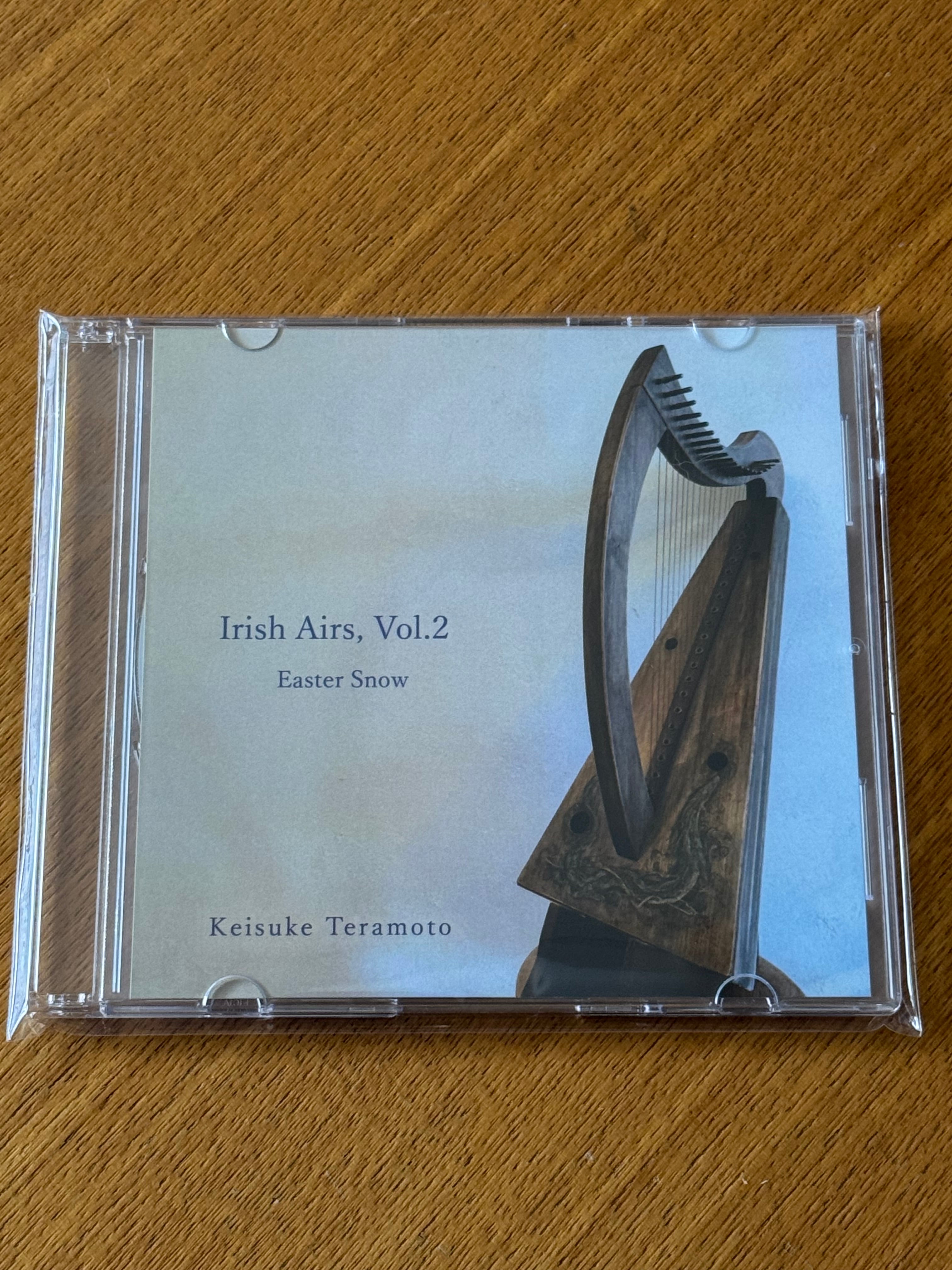 『アイリッシュ・エア Vol.2』は、20弦の金属弦アイリッシュ・ハープを用いて録音した、アイルランドのスロー・エア集です。本作で使用したハープは、vol.1で用いたハープよりも1オクターヴ高い音域で、日本のヒノキ材を用いて製作しました。