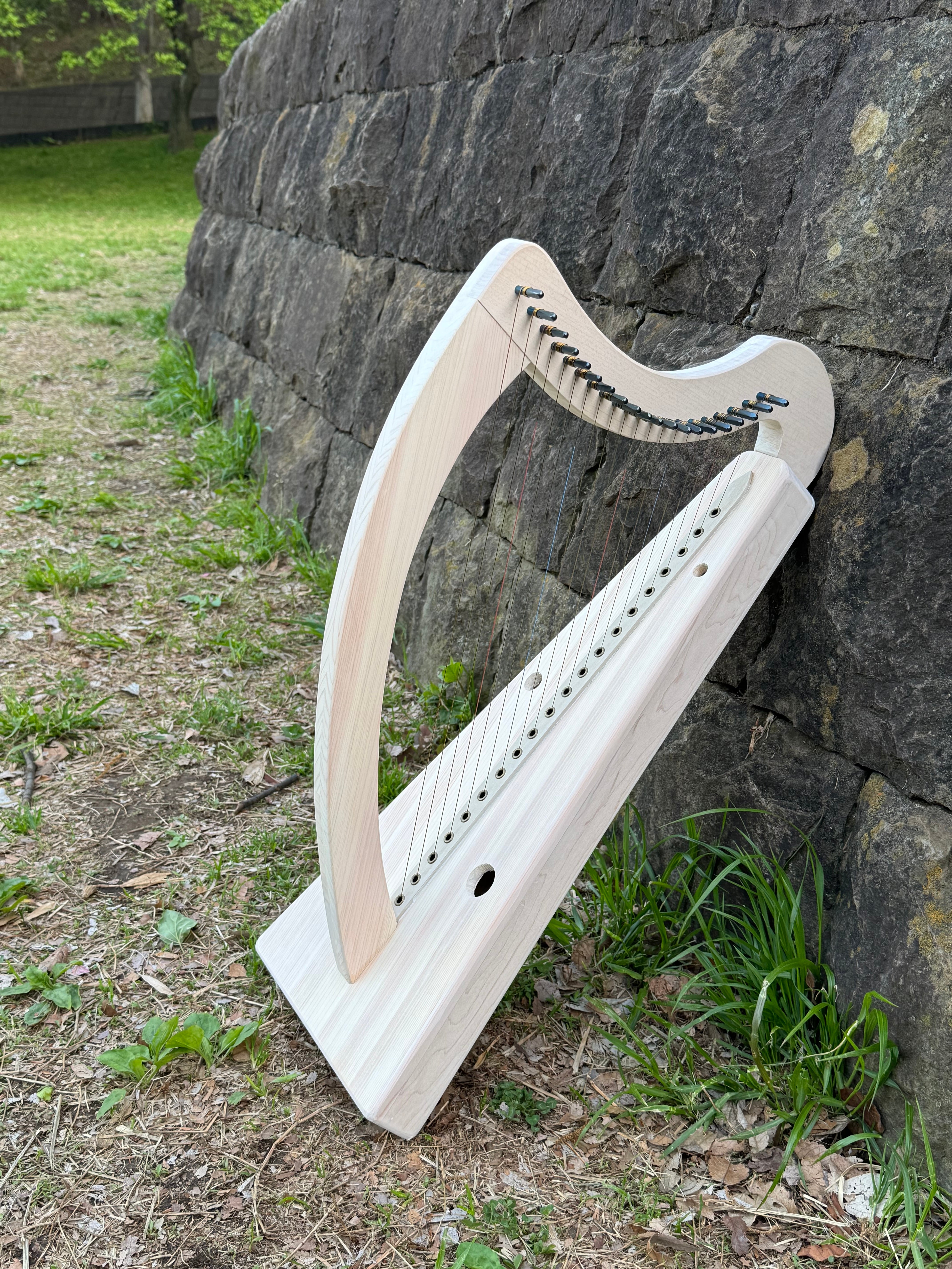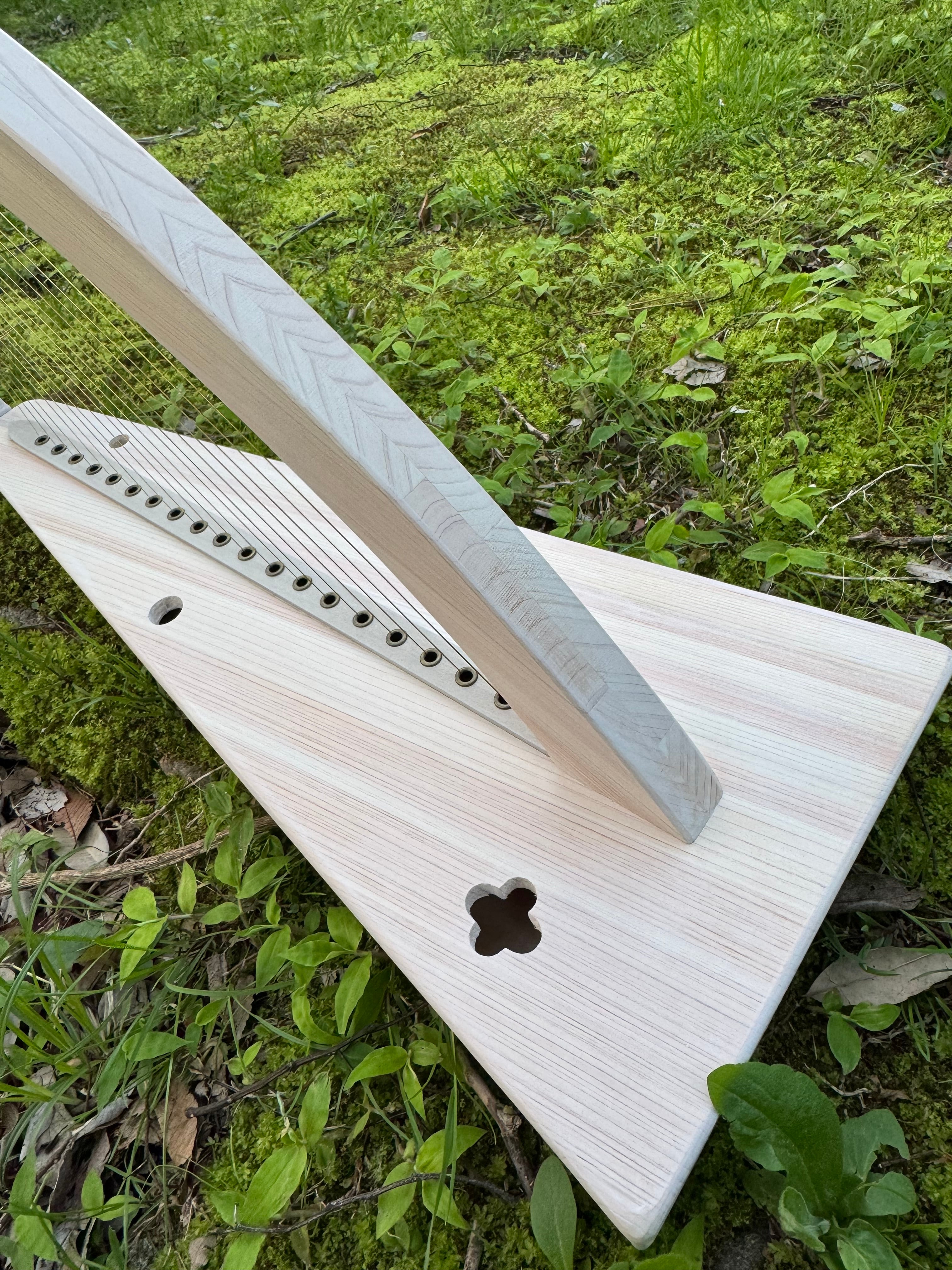 国産ヒノキで製作した20弦の金属弦ハープ。