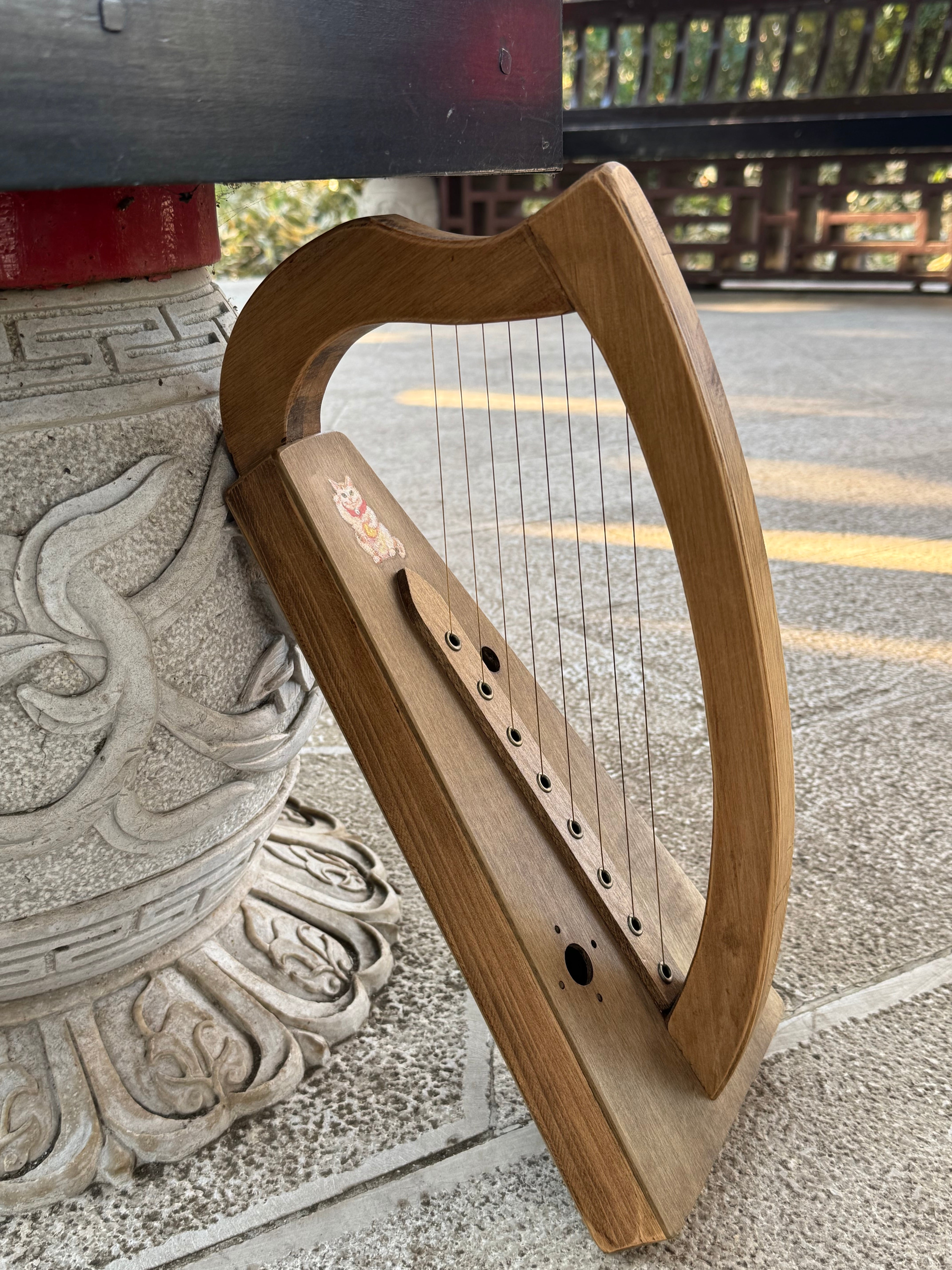 8弦 ホオ/ヒノキ製金属弦ハープ「まねきねこ」(op.354)