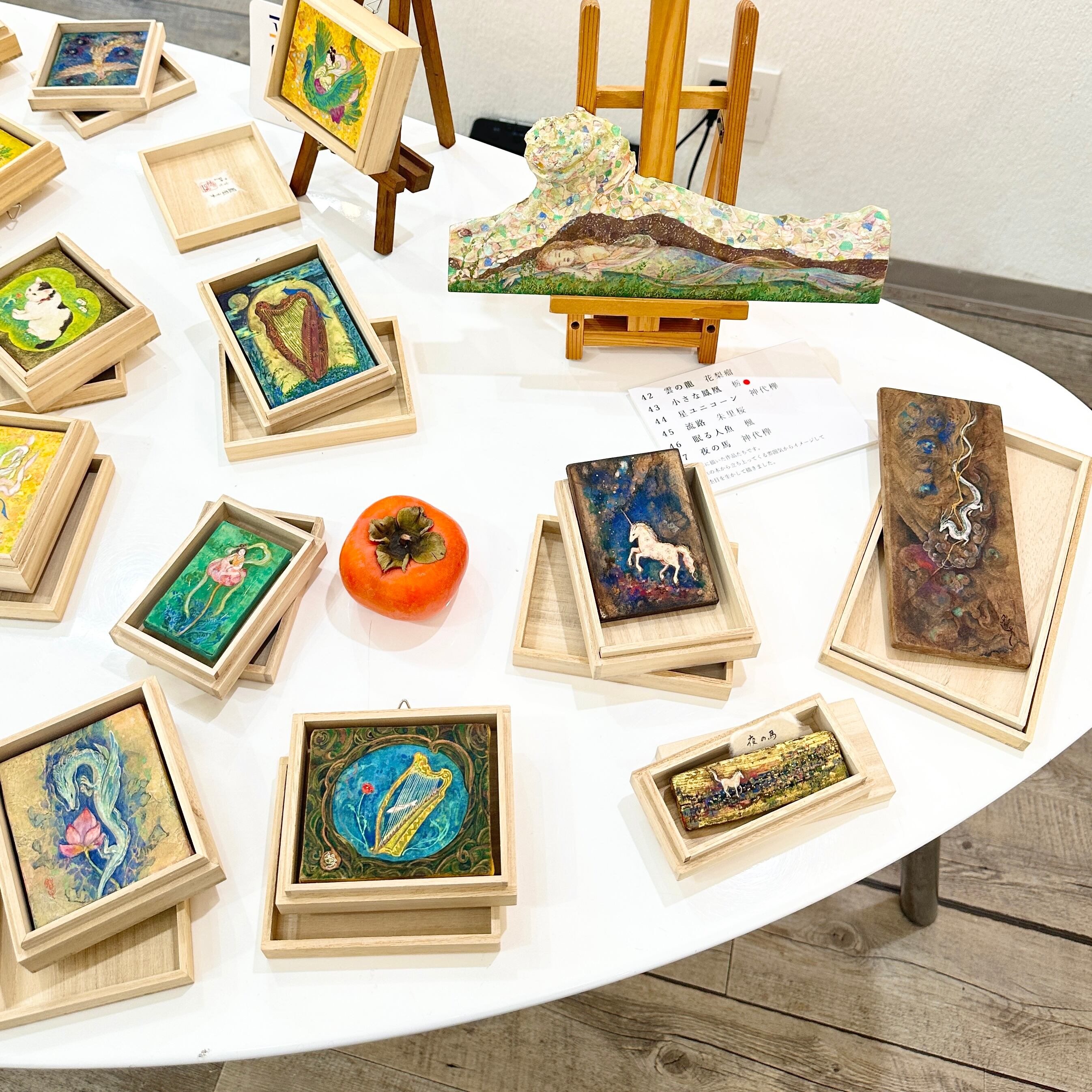 蓋付きの桐箱に入った小さな日本画作品です。