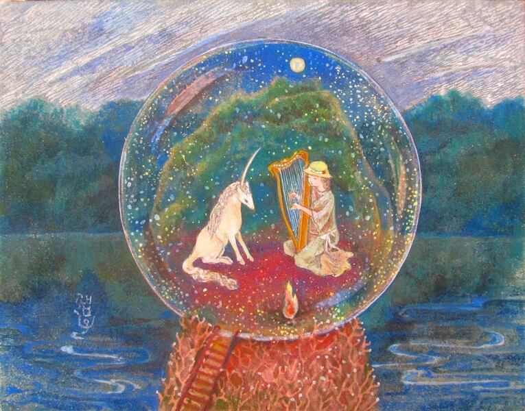 静かな時が流れるイメージ。森と湖、透明な雰囲気を表現しました。