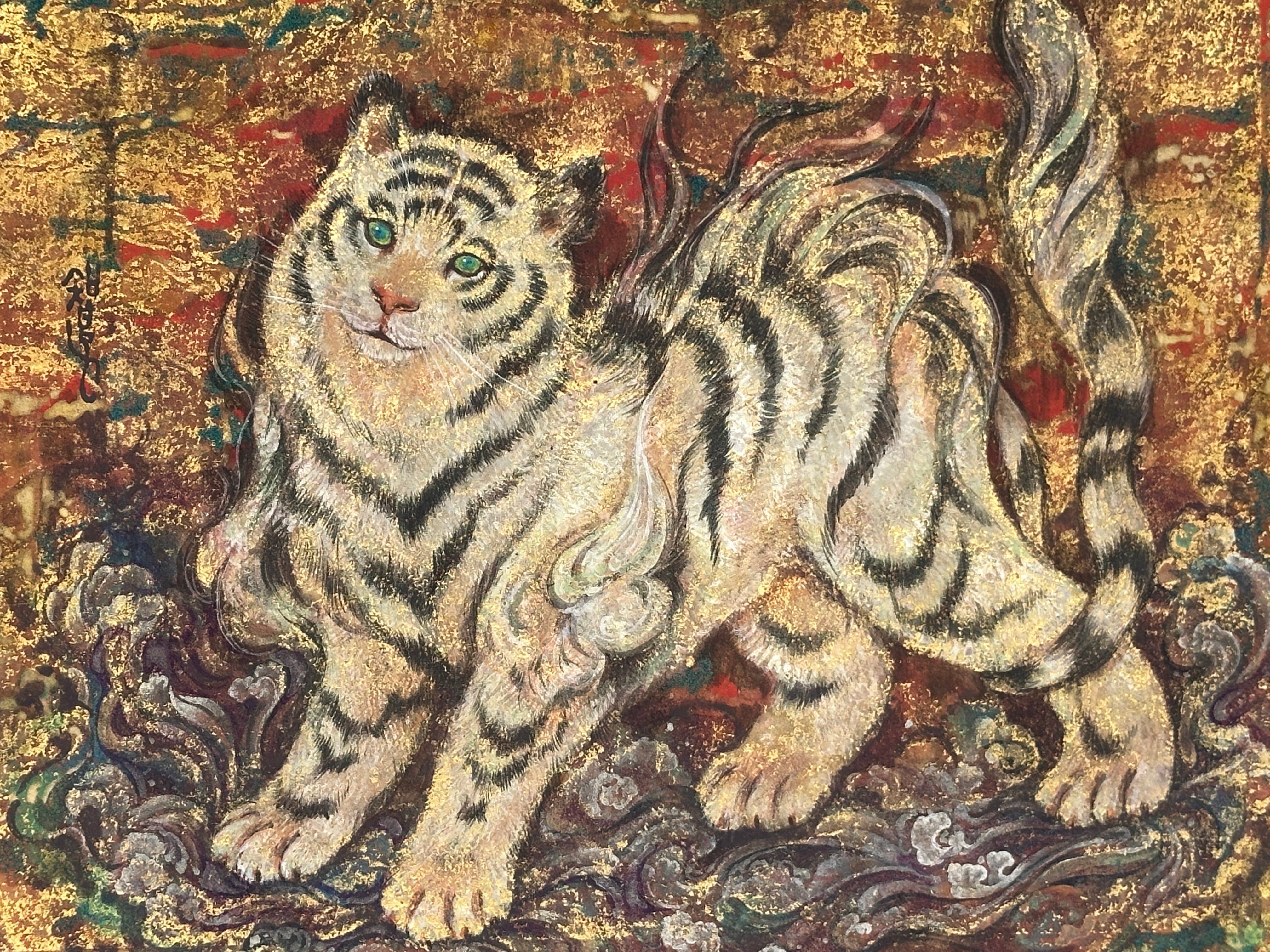 雲肌麻紙、墨、岩絵具、金箔